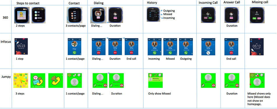 We identified half a dozen kid watch competitors and purchased several devices. We catalogued their features and mapped their screens and navigation, and tried to answer: how did they earn their market position, and what do we need to do to reach higher volumes?